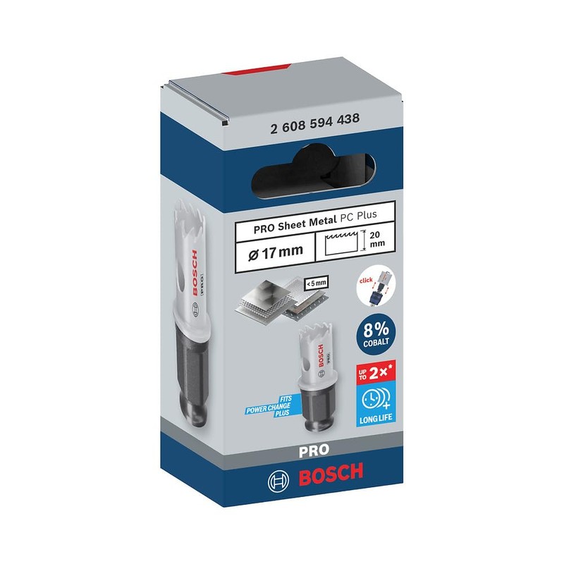 - Box contents: Pro Sheet Metal PC Plus hole saw, 17 mm