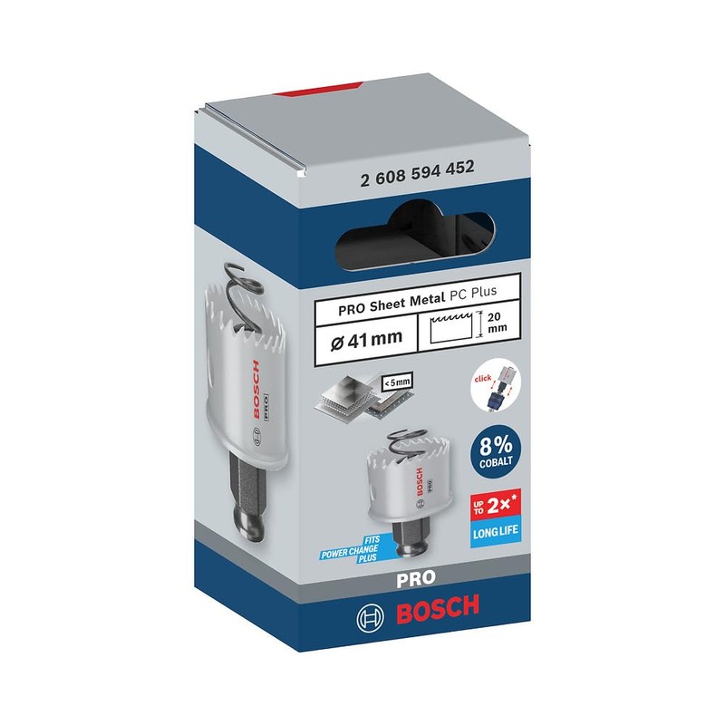- Box contents: Pro Sheet Metal PC Plus hole saw, 41 mm