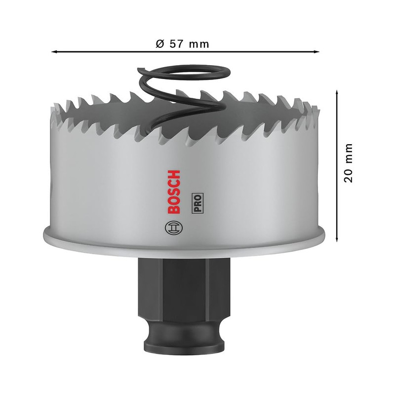 - Box contents: Pro Sheet Metal PC Plus hole saw, 57 mm