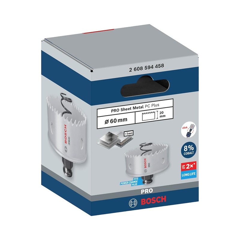 - Box contents: Pro Sheet Metal PC Plus hole saw, 60 mm