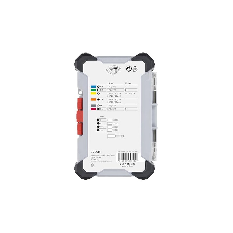 - Box contents: extra hard screwdriver bit set, 43 pieces.
