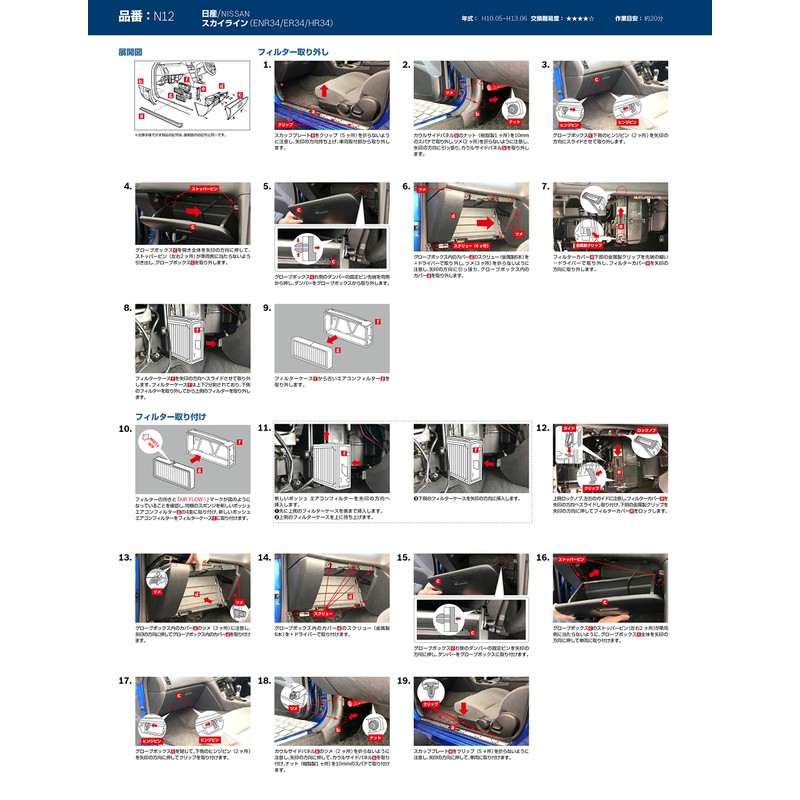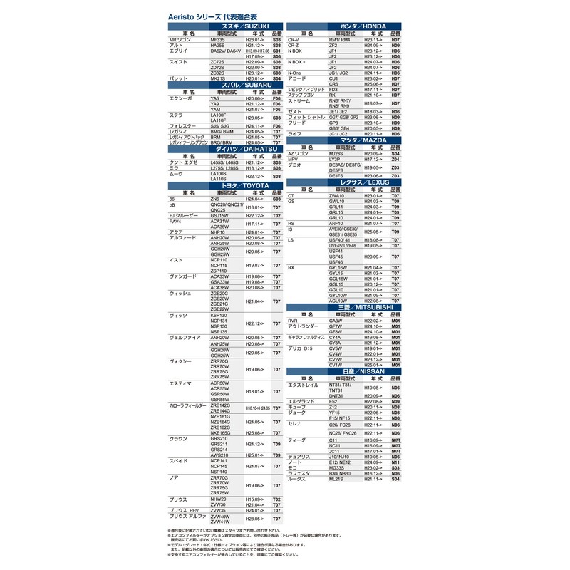 - [Features] Added antibacterial function to dust removal and deodorizing filters. [Specifications] For Nissan vehicles