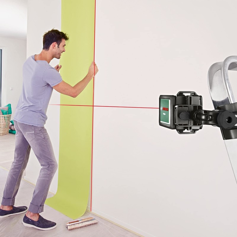 Bosch cross line laser Quigo with universal clamp MM 2 (easy and precise alignment with flexible positioning of the tool thanks to the universal clamp)