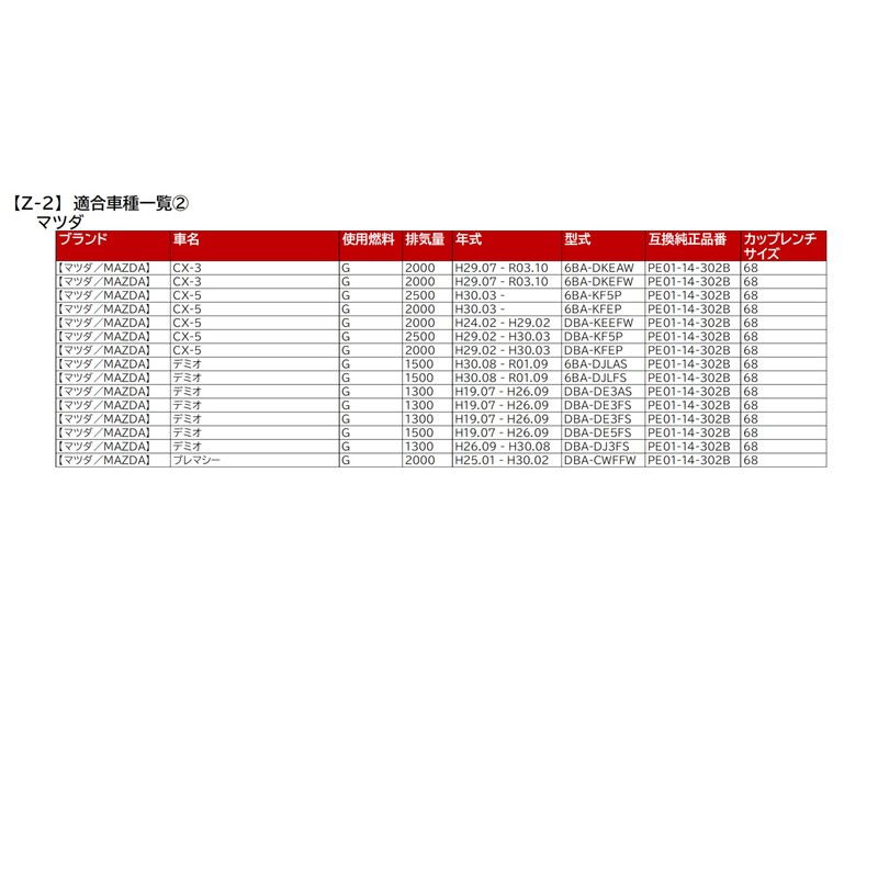 Size: | 【Z-2】 (マツダ スバル 等) |