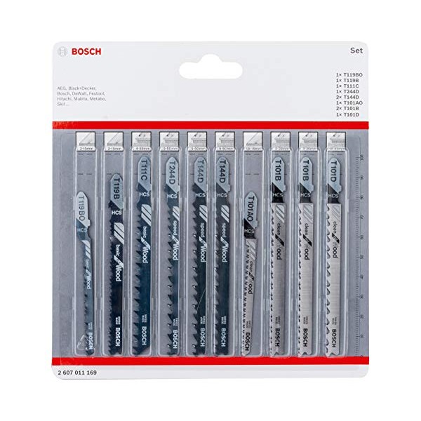 Bosch Professional 10-Piece Jigsaw Blades Set (for Wood, Accessories for Jigsaws with T-Shank)