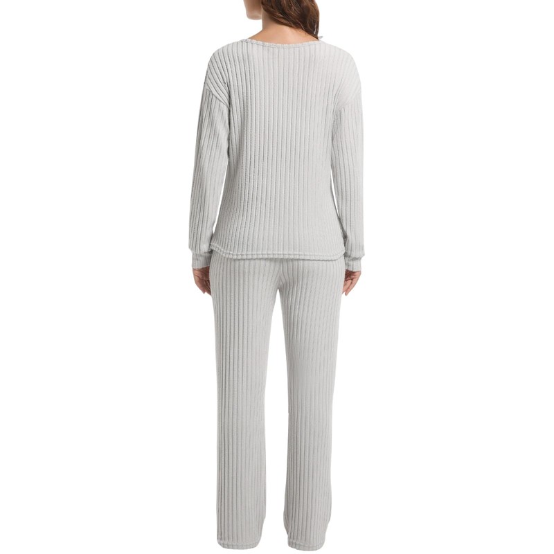 BOSECETA 2 Piece Lounge Pajamas for Women Set Casual Ribbed Long Sleeve Matching Set Pj Outfit Fall Sleepwear with Pockets (US, Alpha, Large, Regular, Regular, Light Grey)
