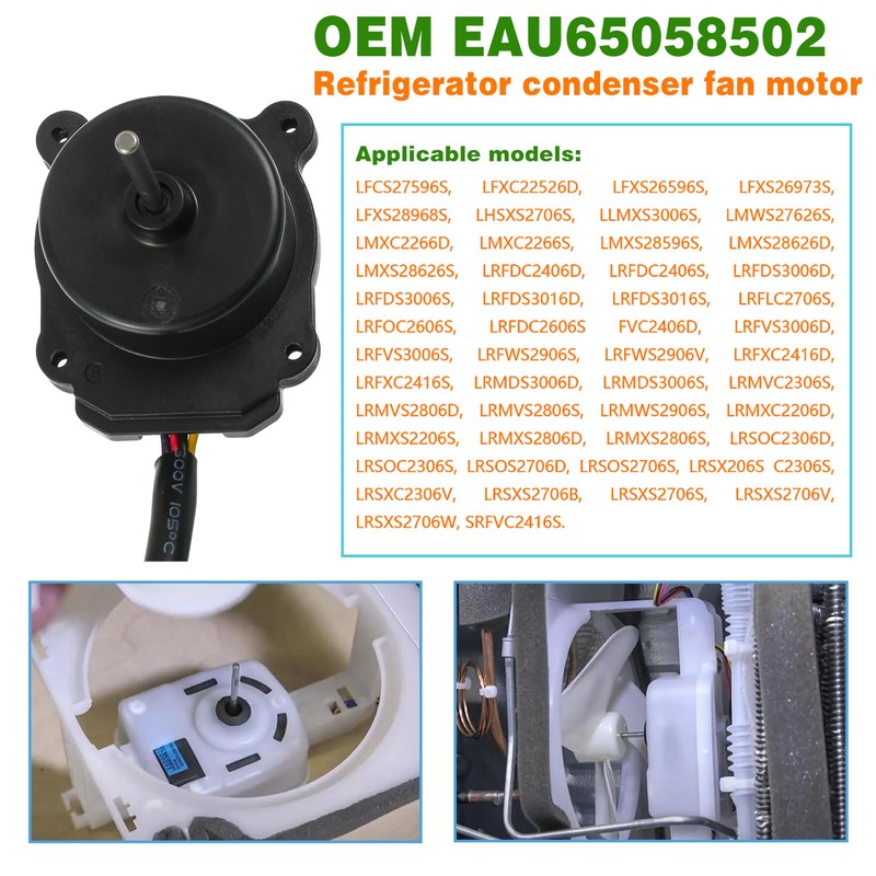 • Condenser fan motor eau65058502 Fits for:LRMWS2906S/00 LFCS27596S/08 LRFOC2606S LRFLC2706S-ASTCNA0 LRFLC2706S-ASTCNA1 LHSXS2706S-ASTCNA0 LHSXS2706S-ASTCNA1 LMXC22626D/00 LMXC22626S/00 LMXS28596S/00 LRFDC2406D/00 LRFDC2406S/00 LRFDS3006D/00 LRFDS3006S/00 LRFDS3016D/00 LRFVC2406D/00 LRFVS3006S/01 LRFWS2906S/00 LRFXC2416D/00 LRFXC2416S/01