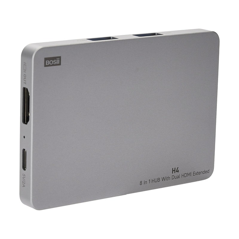 BOSII H4 Laptop Monitor Extension - 8 in 1 HUB with Dual HDMI Extended, 2 HDMI(4K @60Hz),3 USB A&C 3.0 Ports Hub for Dell/HP/Lenovo