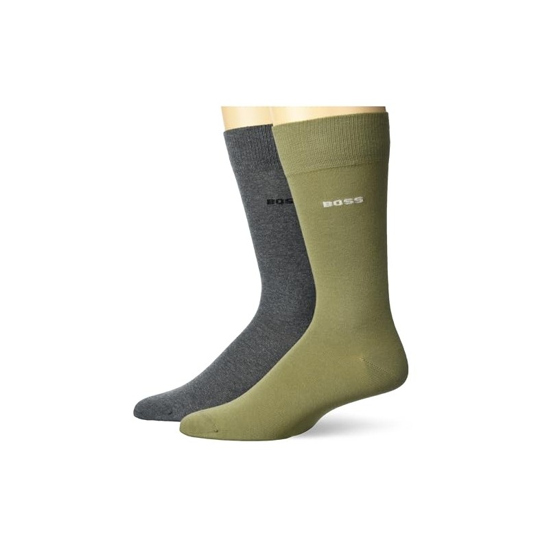 BOSS 2-Pack Bold Logo Solid Cotton Socks, Artichoke Green/Medium Grey, 7-13