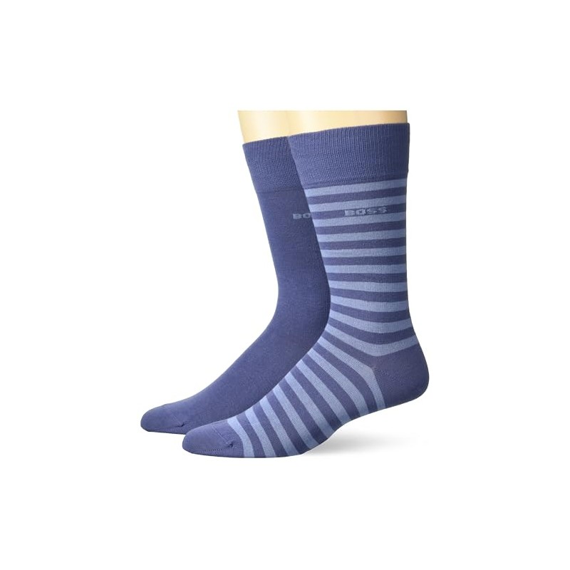 BOSS 2-Pack Bold Logo Stripe Cotton Socks, Blue Corn/Light Blue Berry, 7-13