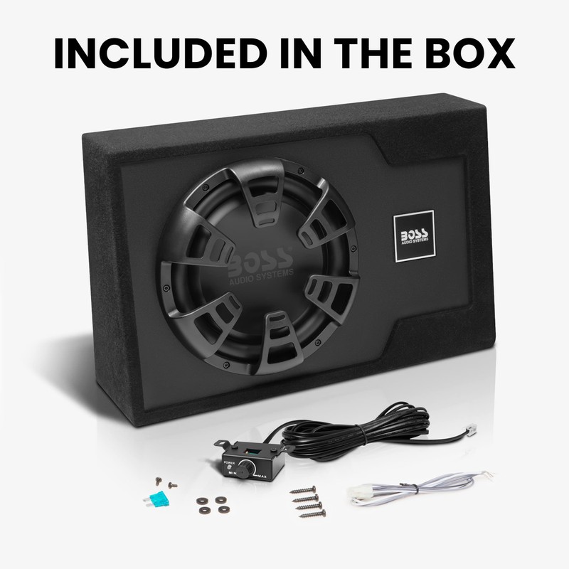 BOSS Audio Systems B12ES 12 Inch Powered Car Subwoofer Package - 1200 High Output, Built-in Amplifier, Low Profile, Remote Subwoofer Control (16 ft Cable)