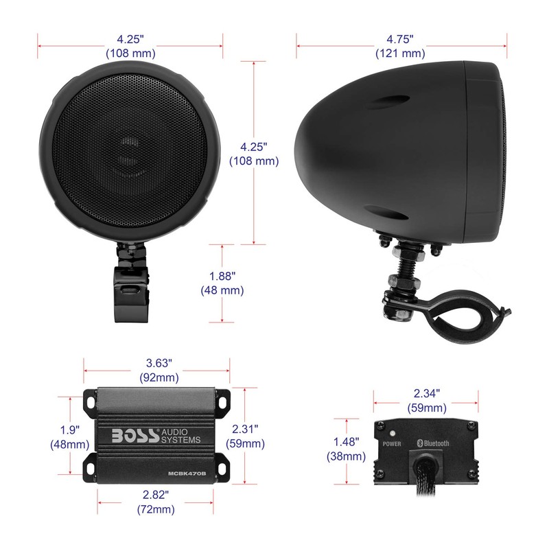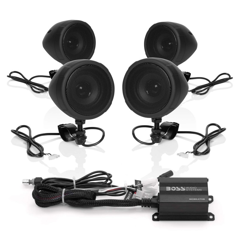 BOSS Audio Systems MCBK470B Motorcycle Bluetooth Speaker System - Class D Compact Amplifier, 3 Inch Weatherproof Speakers, Volume Control, Great for Use With ATVs and 12 Volt Vehicles