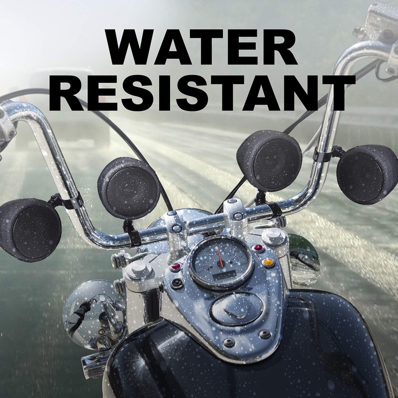 - SPEAKERS: Also included are four 3-inch, black, full range speakers. The adjustable brackets will fit handlebars from ranging from .75 to 1.25