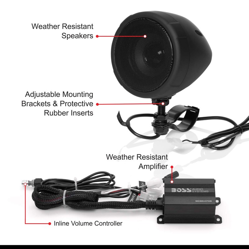Boss Audio Systems MCBK470B Motorcycle Bluetooth Speaker System - Class D Compact Amplifier, 3 Inch Weatherproof Speakers, Volume Control, Great for Use With ATVs and 12 Volt Vehicles