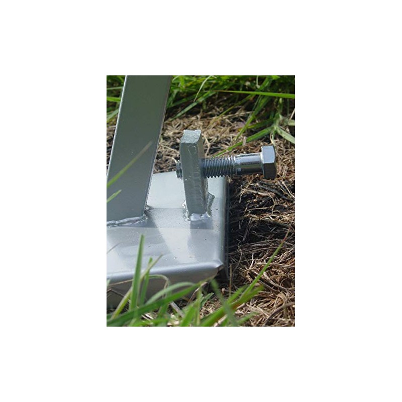 The Non-Typical foot design is completely unique! The feet are designed to accept a T-Post through the center of the foot. The feet are large 7″ square steel plates. Each foot has a large nut welded to it and a ½” bolt that when tightened secures the feeder to the T-Post. This will not only protect the feeder but keep it level and immobile. Feet will receive any pipe or tubing with an I.D. of 1.25″ or larger. The Square tubing on the Deluxe feet is 7/8″ square tubing. Keeps hogs and cattle from knocking over feeders and spreading the legs. All feet are sold individually, not in sets.BB-24.3