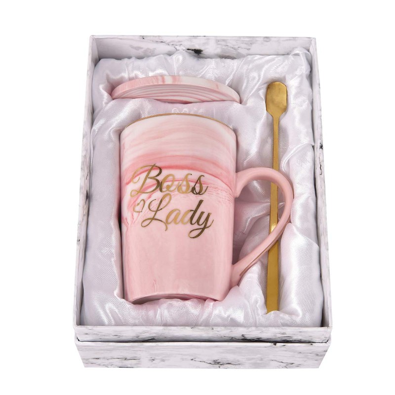 Boss Lady - Taza de café para mujer, regalo para jefe, mujer, taza de agradecimiento para el día del jefe, taza para jefe, jefe, dama, tazas con impresión de oro, 14 onzas, con exquisita caja, cuchara