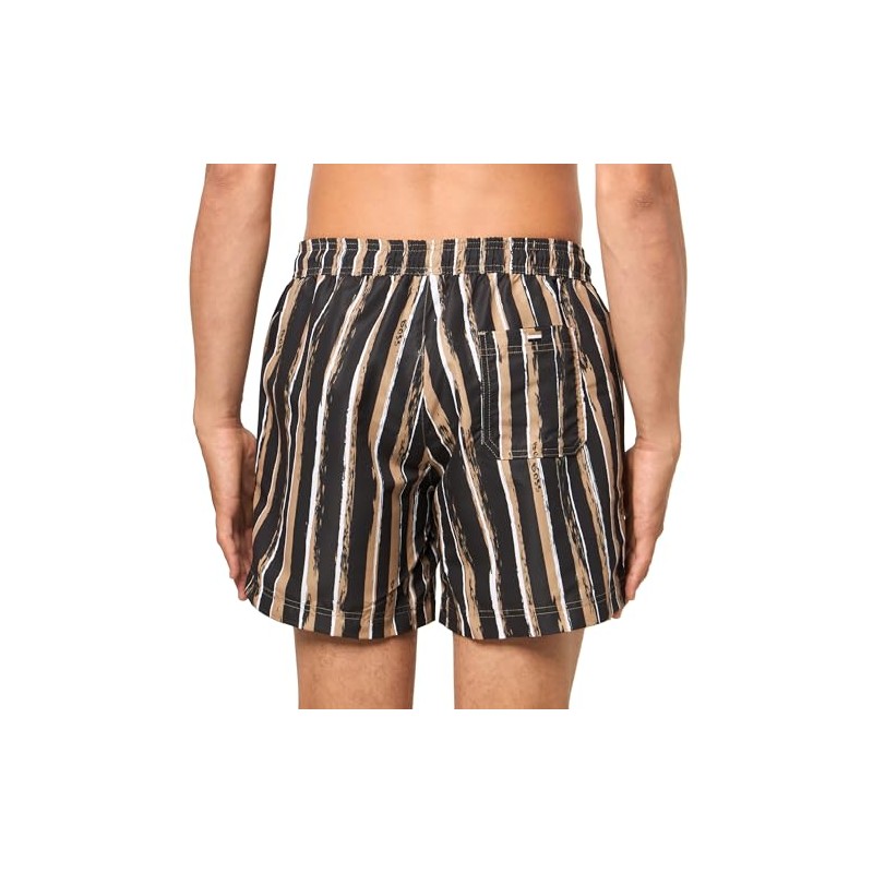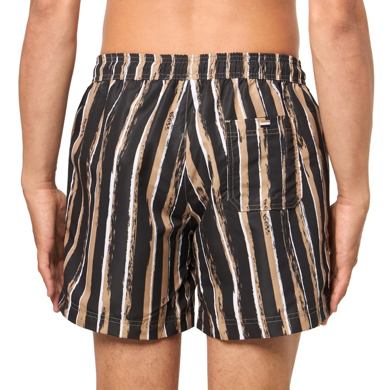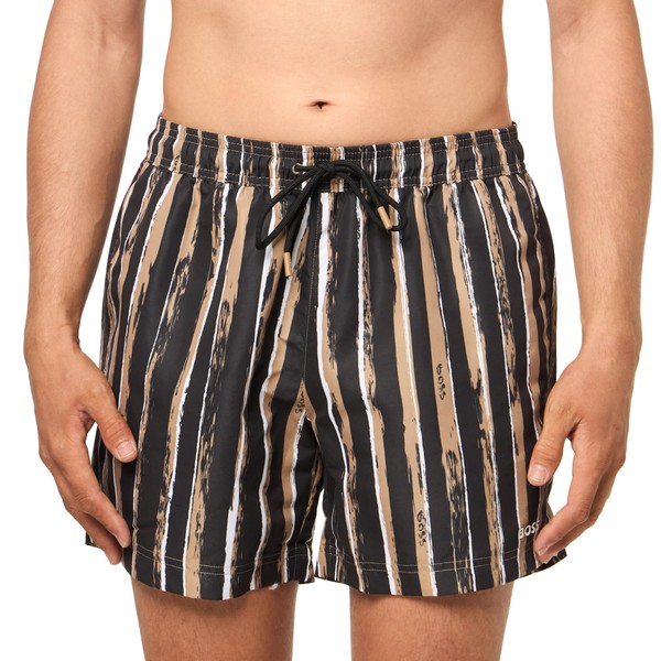 BOSS Men's Broken Stripe Swim Trunk, Black Gloss, X-Large