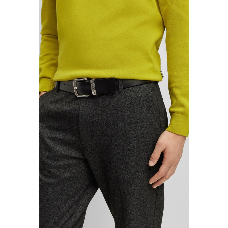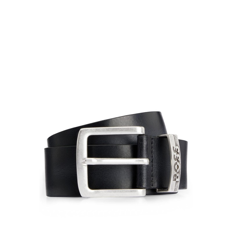 BOSS Men's Jen-loop Sz40 Leather Belt with Metal Logo Loop, Black 1