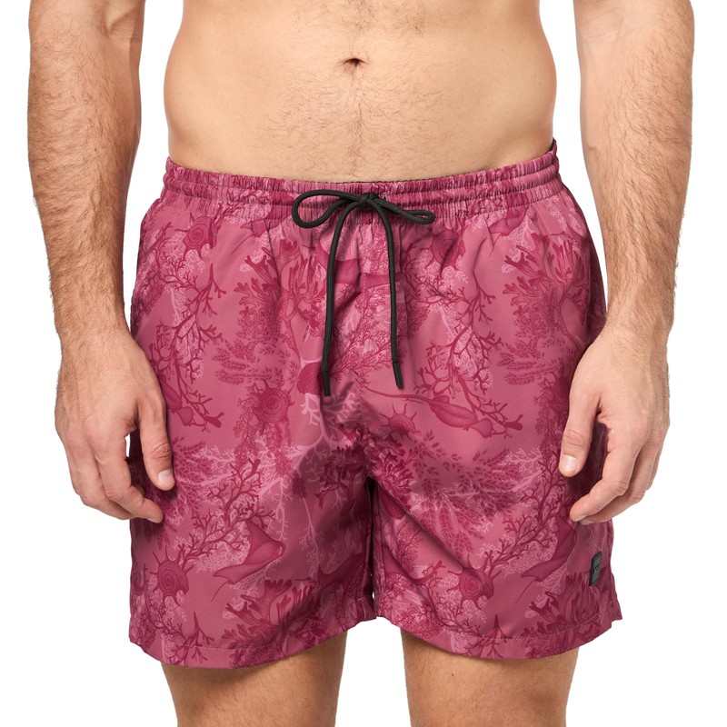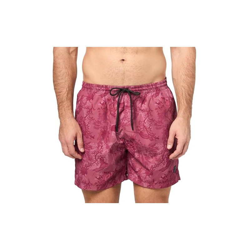 BOSS Men's Standard Tropical Print Swim Trunks, Medium Red Palm Leaf, Large