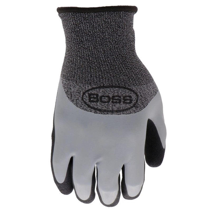 Boss Men's Tactile Barrier Dual Layer Latex Coated Work Gloves, Water Resistant, Superior Grip, Tear Resistant, Gray/Black, Large (B32021-L)