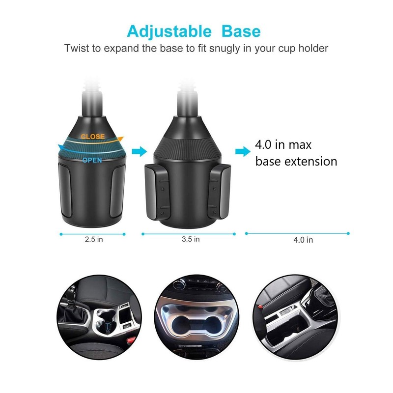 - Fits cup holder 2.5 to 4.0 inches. Rotate slotted cone to expand for a snug fit.
