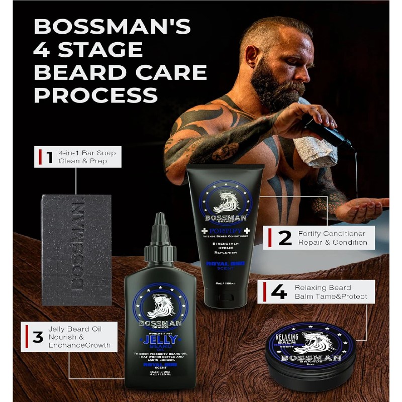 Bossman Jelly Beard Oil for Men & Beard Balm for Men Combo - Royal Oud Scent
