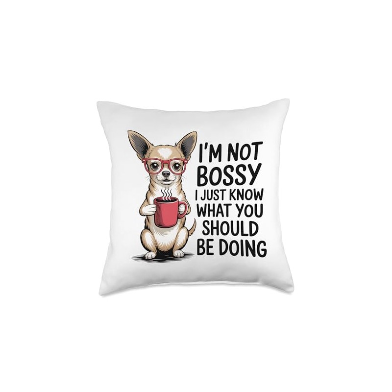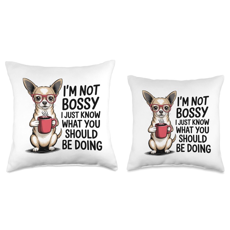 Bossy Chihuahua Coffee Lover Funny Dog Sarcastic Attitude Throw Pillow