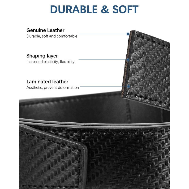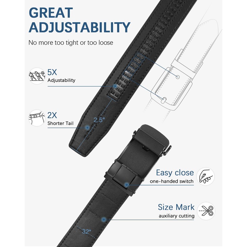 - High-quality design - automatic men's belt is made of genuine leather, is soft and flexible. The stylish alloy buckle is scratch-resistant and durable, and the belt body is made of reinforced double stitching to prevent tearing. It is soft and pliable, even when bending or squatting.