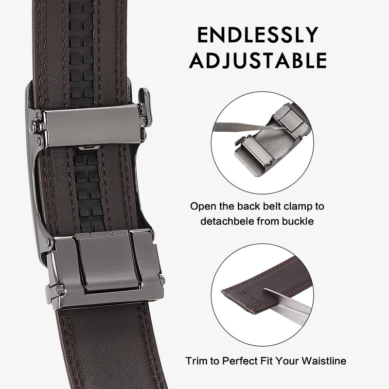 - Easy to Use: Loosen and tighten as needed in a second. Just slide the belt into the buckle and pull the leather belt through, the buckle simply auto locks the belt, releasing the buckle by simply shifting the small lever.