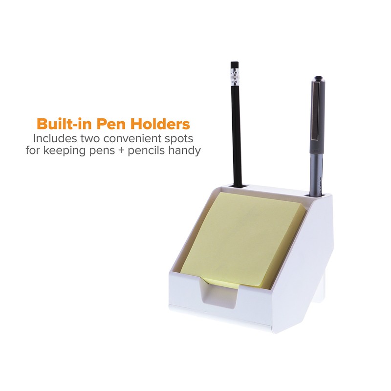 Bostitch Konnect™ Sticky Note Holder + Business Card Stand, Includes Pen Holders, White