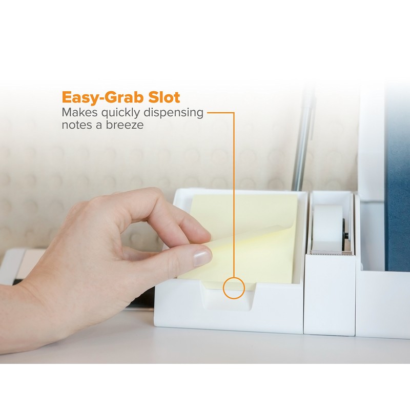 Did you ever think you would need a sticky note holder? Think again. This Konnect sticky note dispenser conveniently stores sticky notes, business cards and more. No more losing track of where you left that important memo. Compact for saving desk space, this business card holder features an easy-grab slot for simple dispensing. Plus, it comes with a stack of Yellow sticky notes so you're ready to work. The two integrated holders on the top holds two of your favorite writing utensils, always keeping them close. Dock this post-it note holder to the konnect cord management rail, a vital part of the konnect system. Workspace organization is vital and has never been easier to achieve. Goodbye clutter. 3 year limited warranty. Features: conveniently holds business cards + sticky notes - easy-slot grab for quick dispensing - two integrated holders stores pens + pencils - docks to cord management rail or used alone - available in four colors