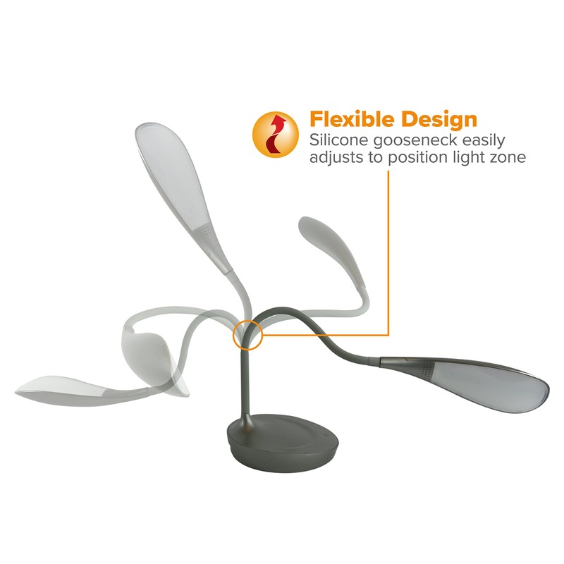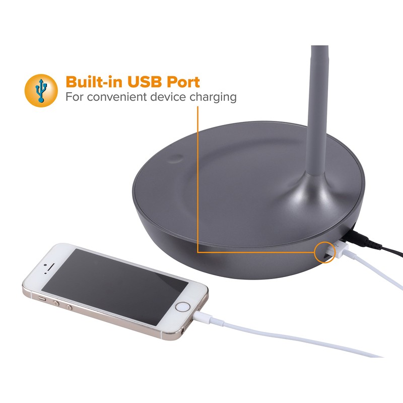 Bostitch Office LED Gooseneck Desk Lamp with USB Charging Port, 3 Dimming Levels, Touch Control, Gray (VLED1502-GR)
