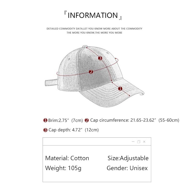 - Tamaño: ajustable para adaptarse a la mayoría de las personas, circunferencia del sombrero: 55-60 cm, profundidad de la tapa: 12 cm