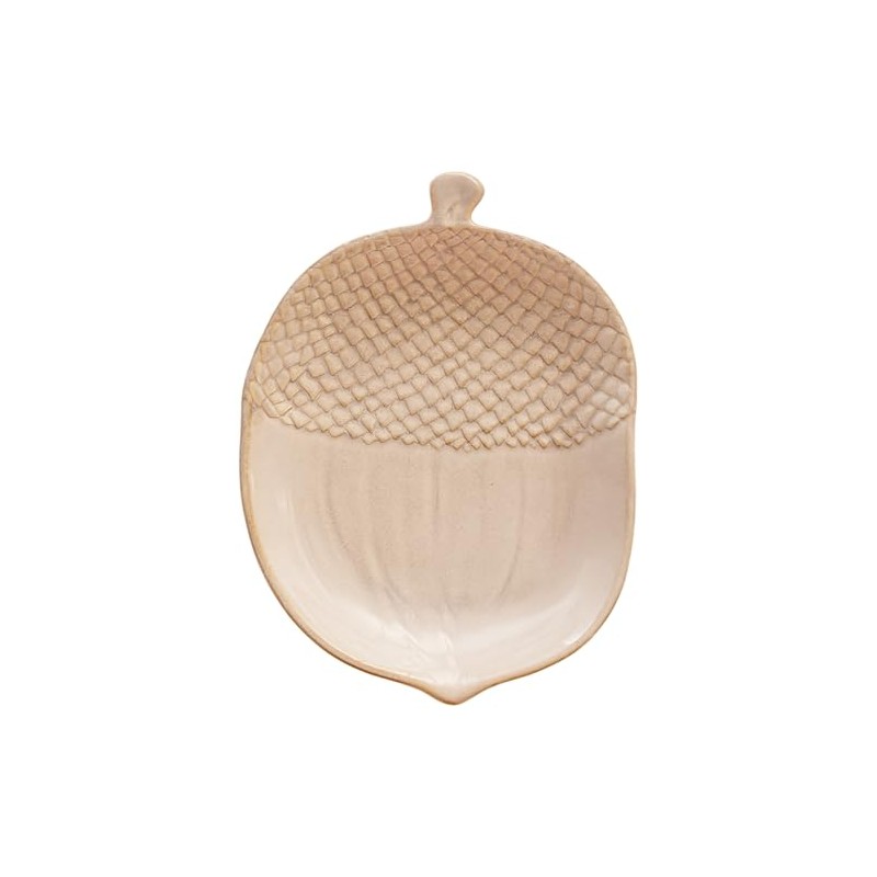 Boston International Acorn-Shaped Stoneware Plate Thanksgiving Serving Dish, 11.25" x 8", Cream