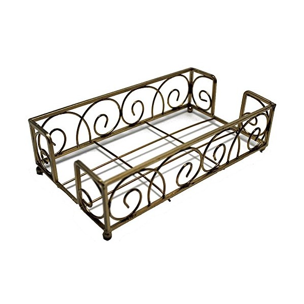 • ELEGANT NAPKIN HOLDER: Flat caddy provides stylish storage space for napkins, ball feet keep napkins raised off surfaces; metal holder features gold leaf finish