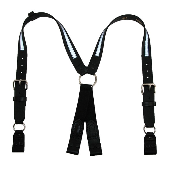 Boston Leather Leather Reflective Loop End Fireman Work Suspenders, Black