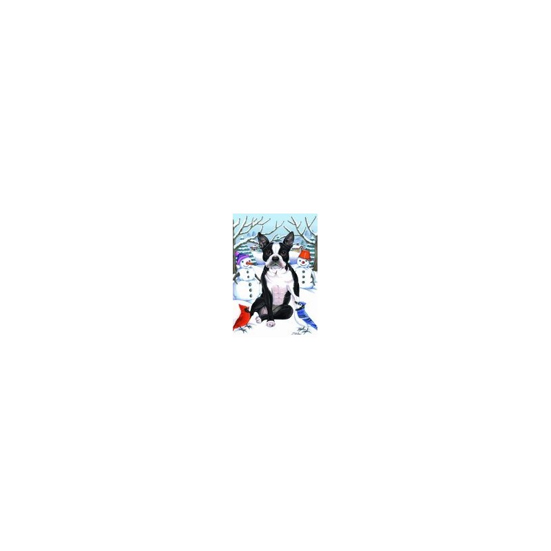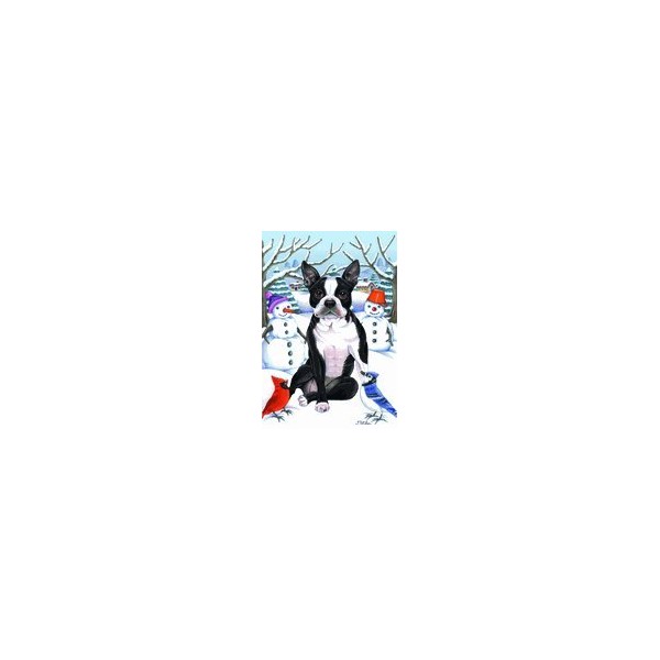 Boston Terrier - by Tomoyo Pitcher, Winter Themed Dog Breed Flags 12 x 18