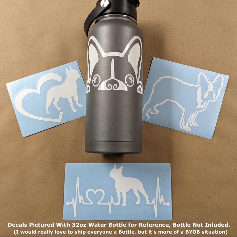 Boston Terrier Decal Pack: Peeking, Heartbeat, Dog in Heart, Standing (Large 5", White)