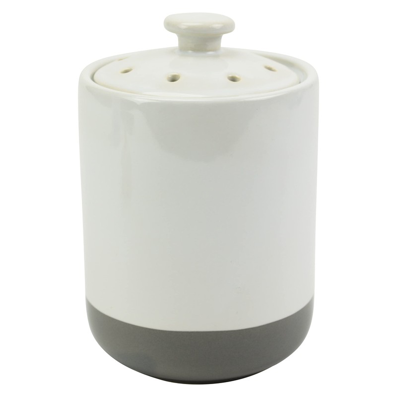 Boston Warehouse Guardamelos de gres, recipiente ventilado, bloque de color blanco y gris