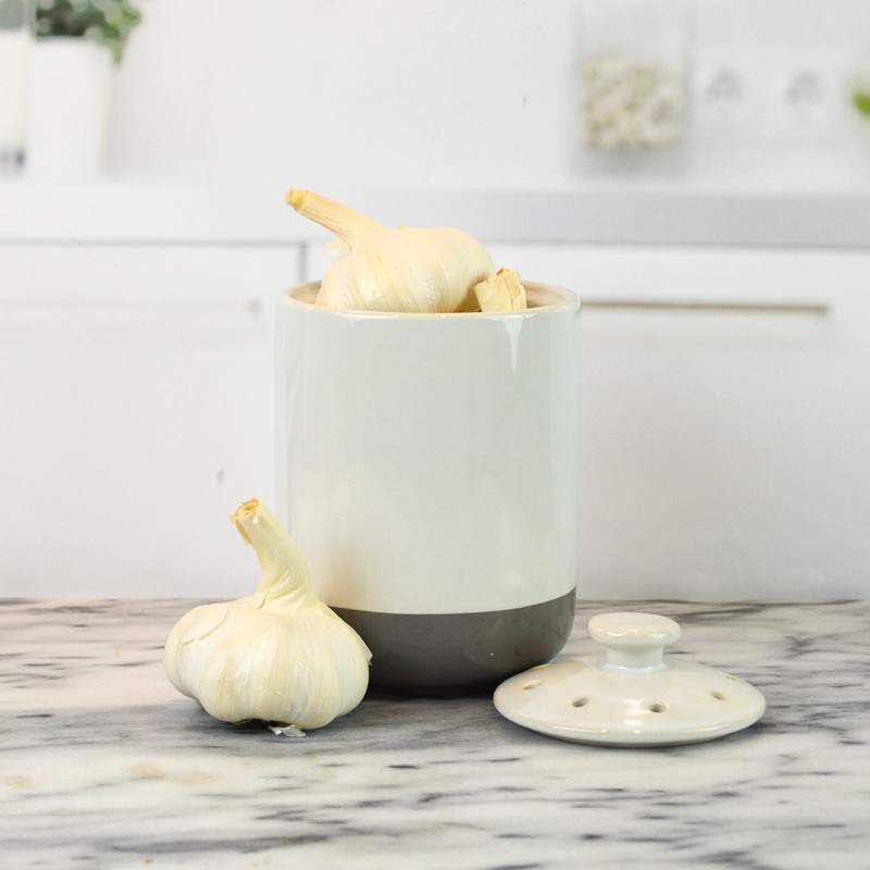 - Diseño versátil: diseñado con estilo de granja, el recipiente de ajo es versátil y combina con la mayoría de colores y temas de diseño de cocina