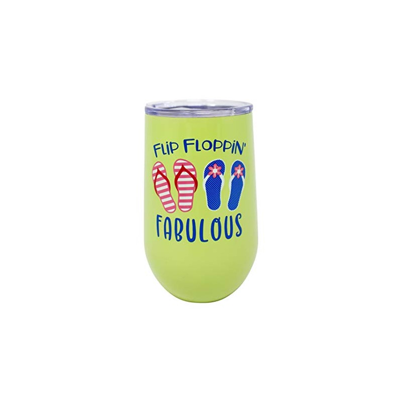 Boston Warehouse Stainless Steel 16 ounce Insulated Stemless Wine Cup, Lime Flip Flops