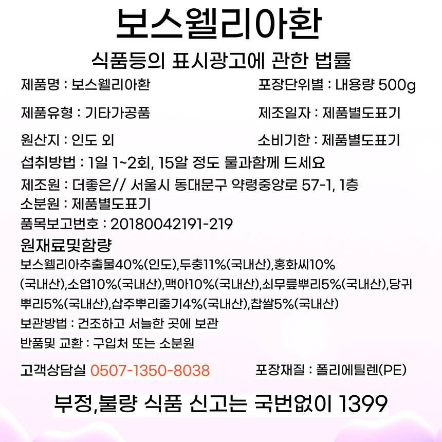 Product Name: Momihoho Boswellia Pill 500gWhen purchasing more than 41 items, additional shipping costs may be requested in increments of 40.