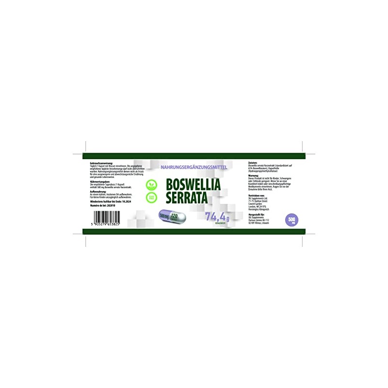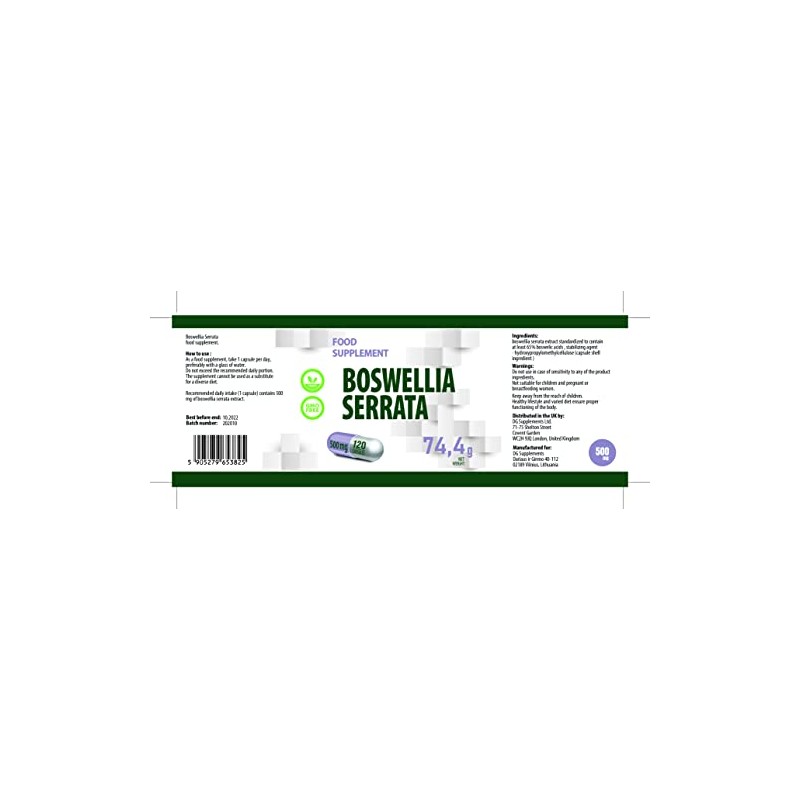 Boswellia Serrata (Indian Frankincense) 10:1 Extract 5000mg Equivalent 120 Vegan Capsules, Certificate of Analysis by AGROLAB Germany, High Strength, No Fillers or Bulkers, Gluten and GMO Free