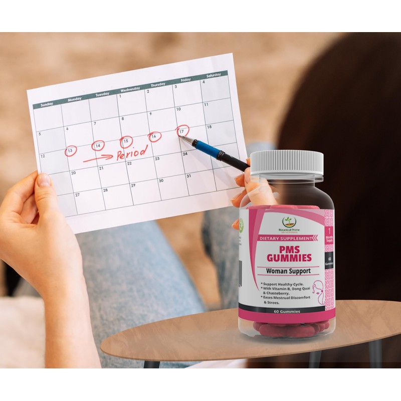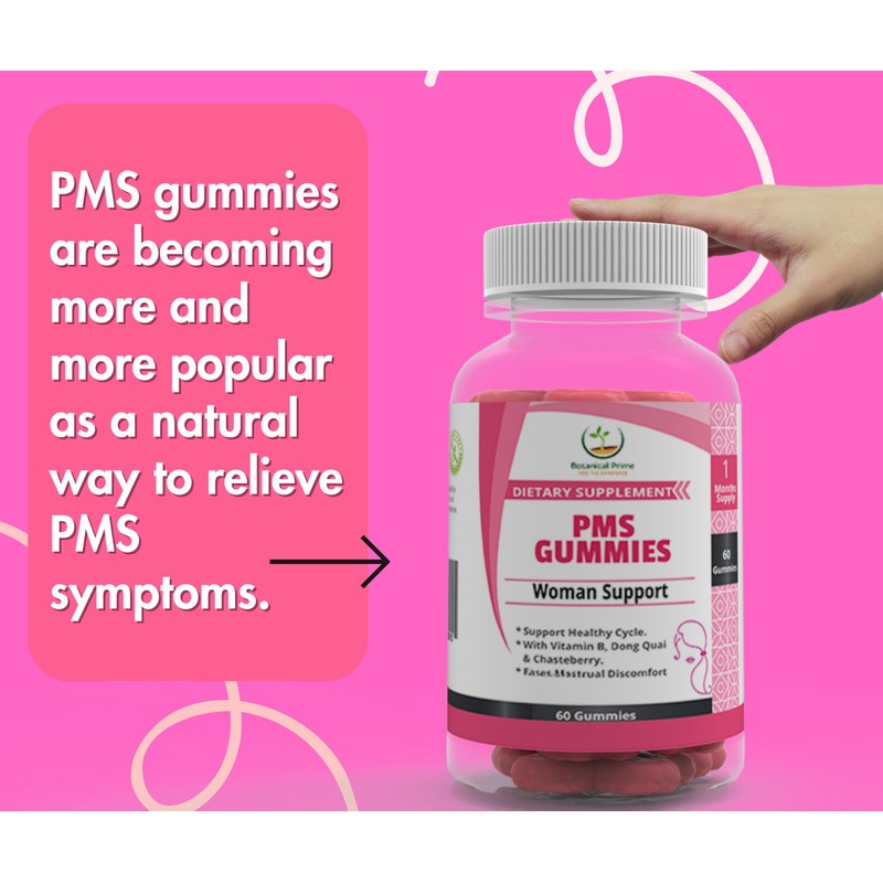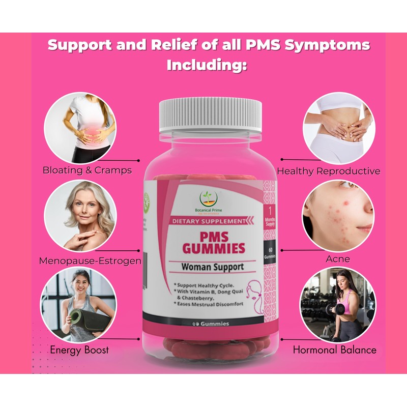 BOTANICAL PRIME PMS Gummies for Women, 30 Servings (Pack of 1) - Proactive PMS Relief - Targets Hormonal Acne, Bloating, Cramps, & Mood Swings with Chasteberry, Vitamin B6, & Lemon Balm