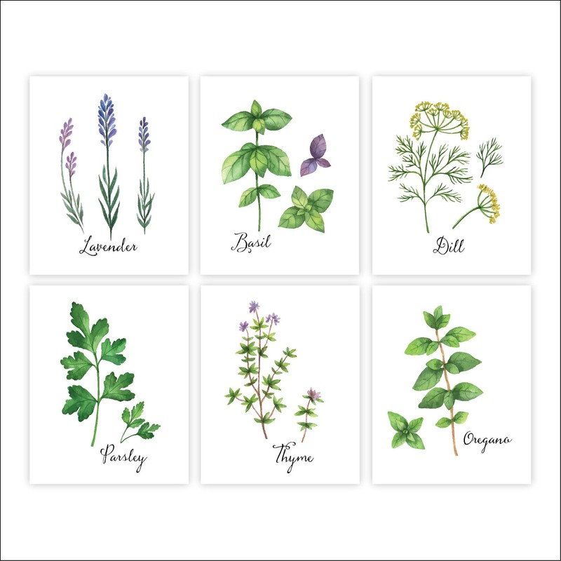 Botanical Prints Kitchen Herbs Wall Art - (Set of 6) - Unframed - 8x10s