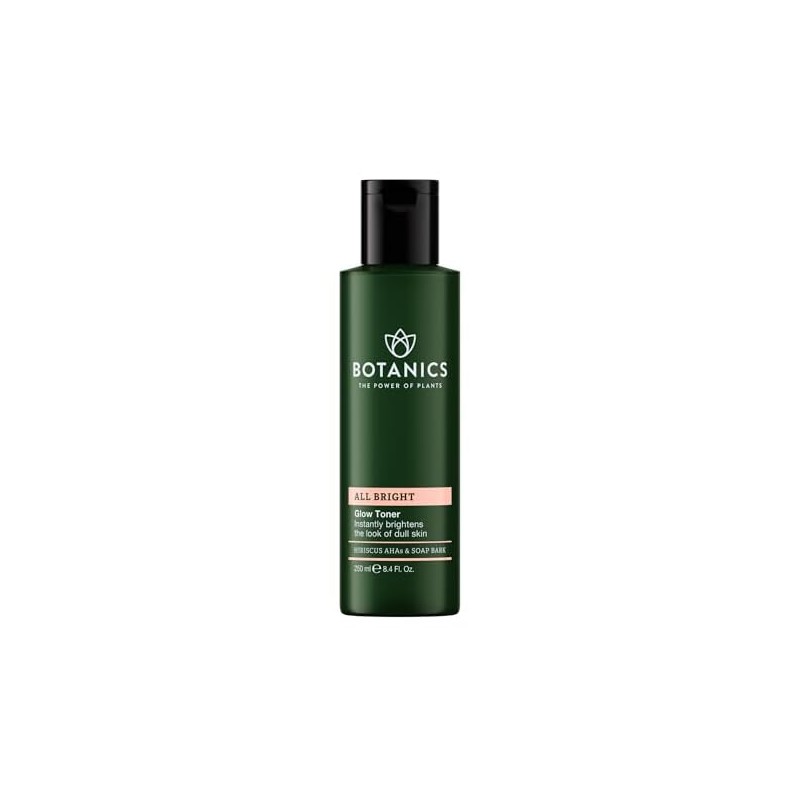 Botanics Glow Toner for Face - Enriched with Hibiscus AHA Exfoliant & Soap Bark - Non-Drying - Vegan and Cruelty-Free Face Toner for Women & Men (8.4 Fl Oz)