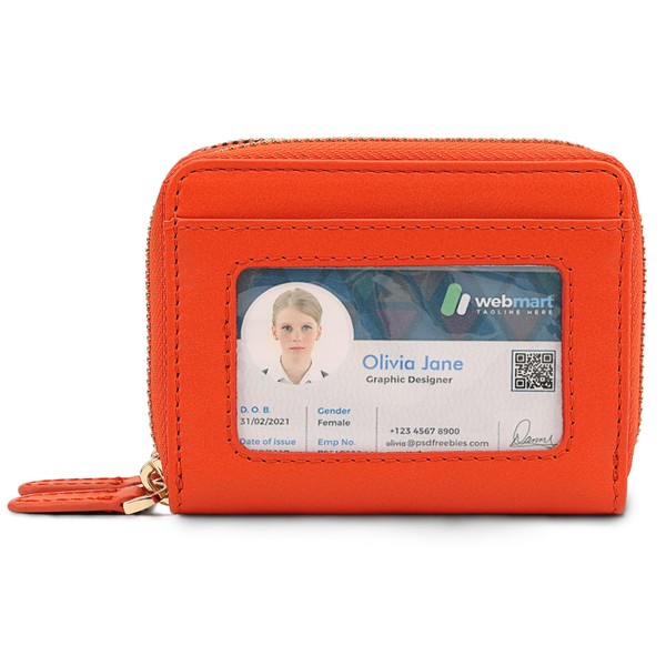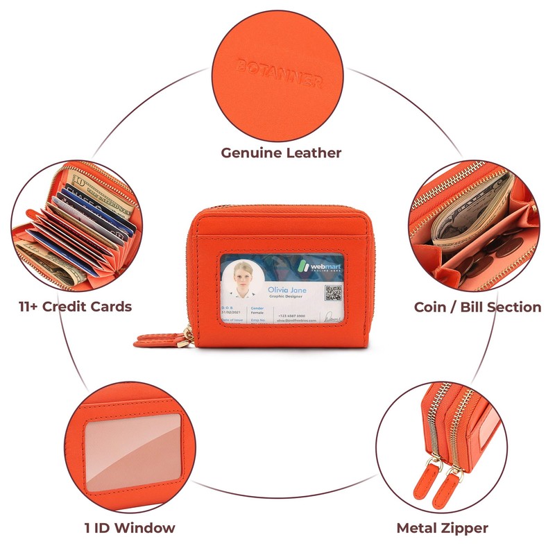 BOTANNER Genuine Leather Women's RFID Protected Wallet with 1 ID Window 1 Coin Section 12 Credit Card Slots Space for Bills Double Zip Around Design - Orange