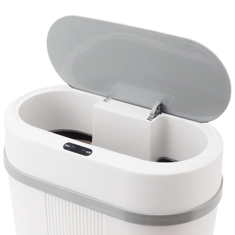 5. AHORRO DE ESPACIO: El bote de basura inteligente de 12L es pequeño y compacto, con un ancho de solo 15 cm, ideal para usar en espacios estrechos y no ocupa mucho espacio. Es muy adecuado para dormitorios, oficinas y otras situaciones.