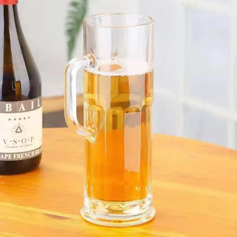 BothEarn Long Beer Mug Set of 2, 21 oz Heavy British Pub Thick Glass with Handle - Stein Cup for Beer Lover