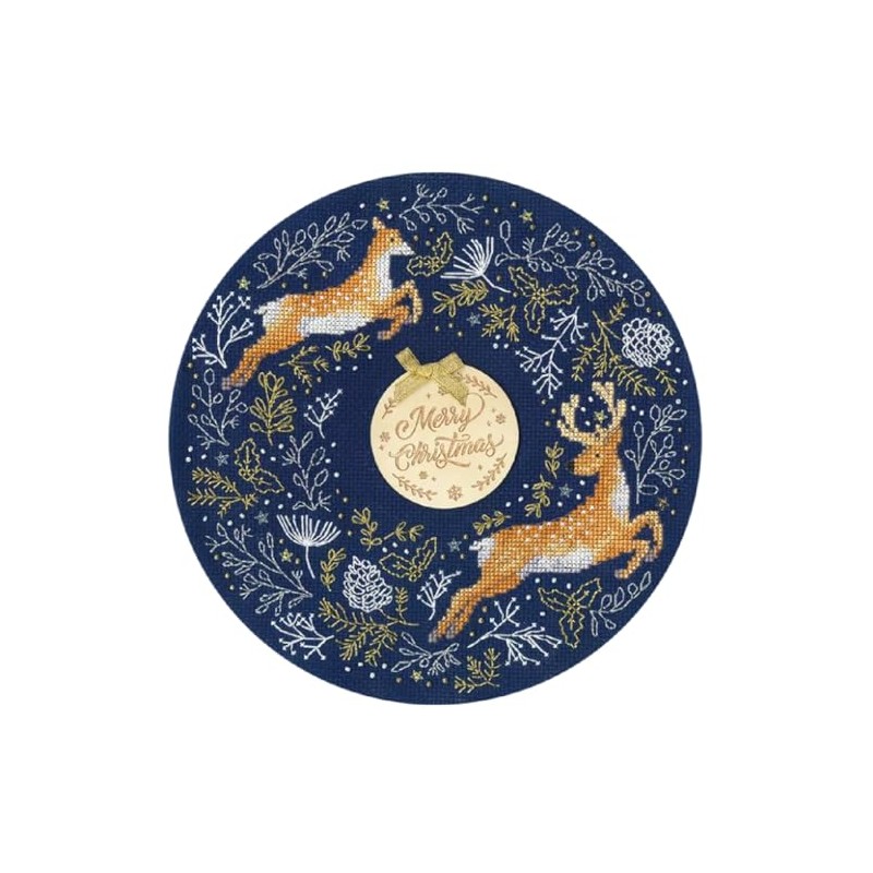 - This kit also includes; metallic threads, beads, sequins, a gold bow, a wooden centre 'Merry Christmas' disc, needles, a clear chart and instructions.